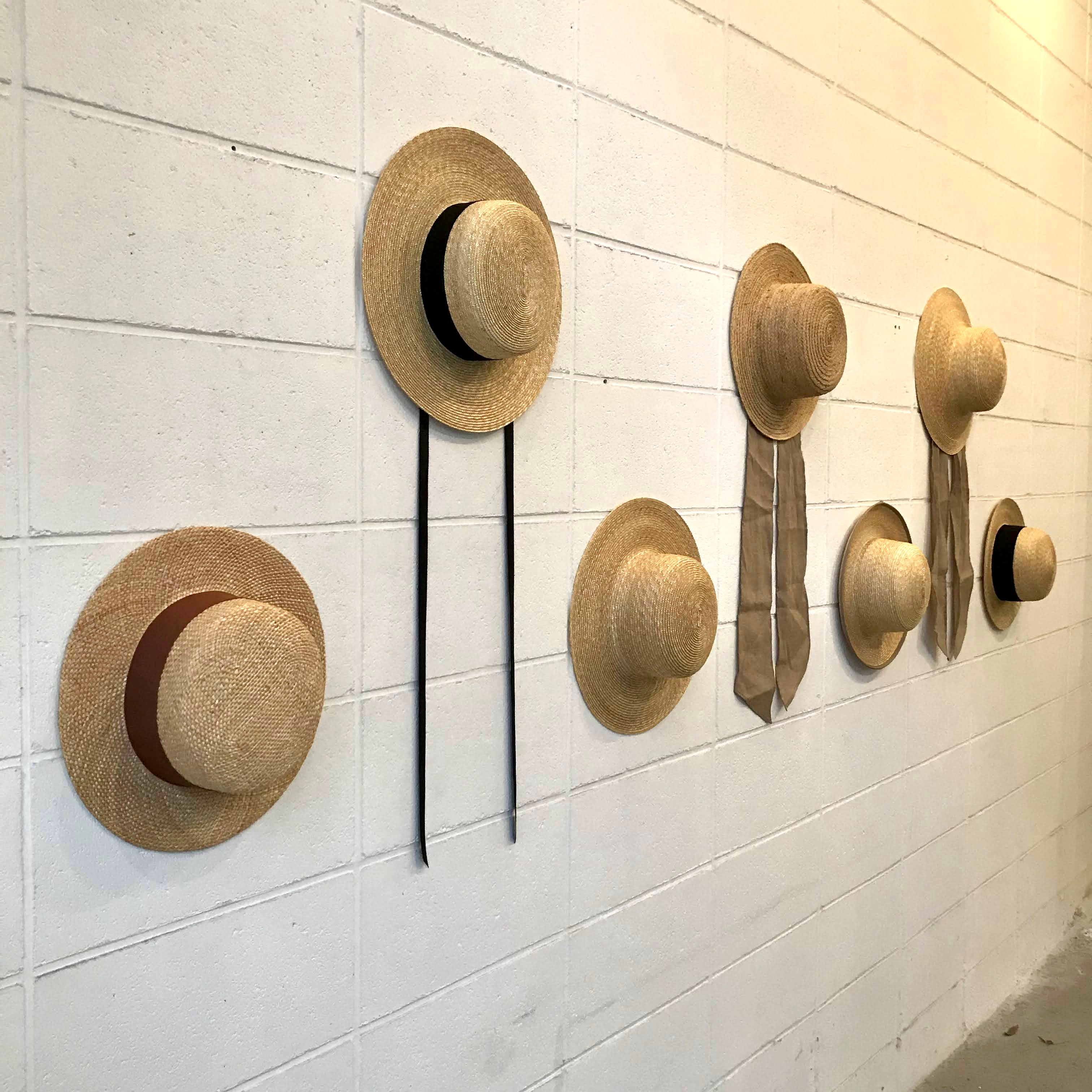 いろいろな種類、形の麦わら帽子と布の帽子から、アフリカの帽子やカゴも並べたいと思います。