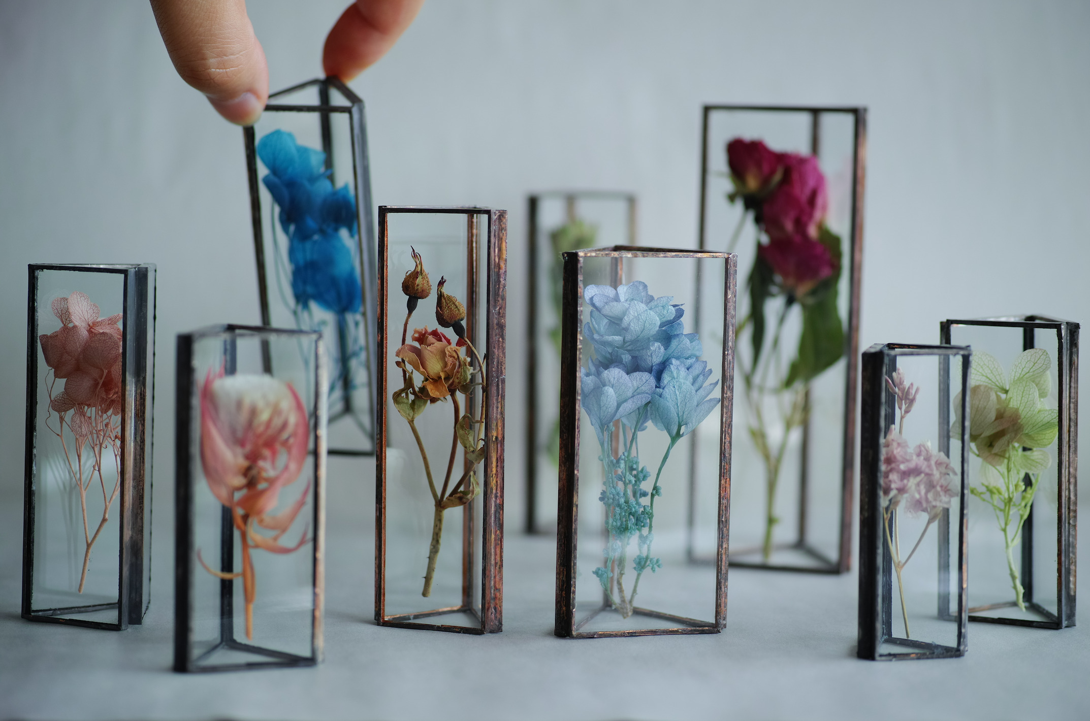 ・ガラスとドライフラワーを使ったプロダクト(ハコミドリ)