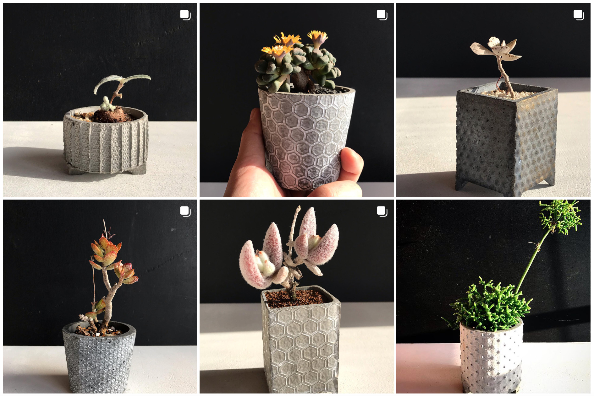 ・サボテンと多肉植物、ハンドメイドのセメント鉢(○文堂)