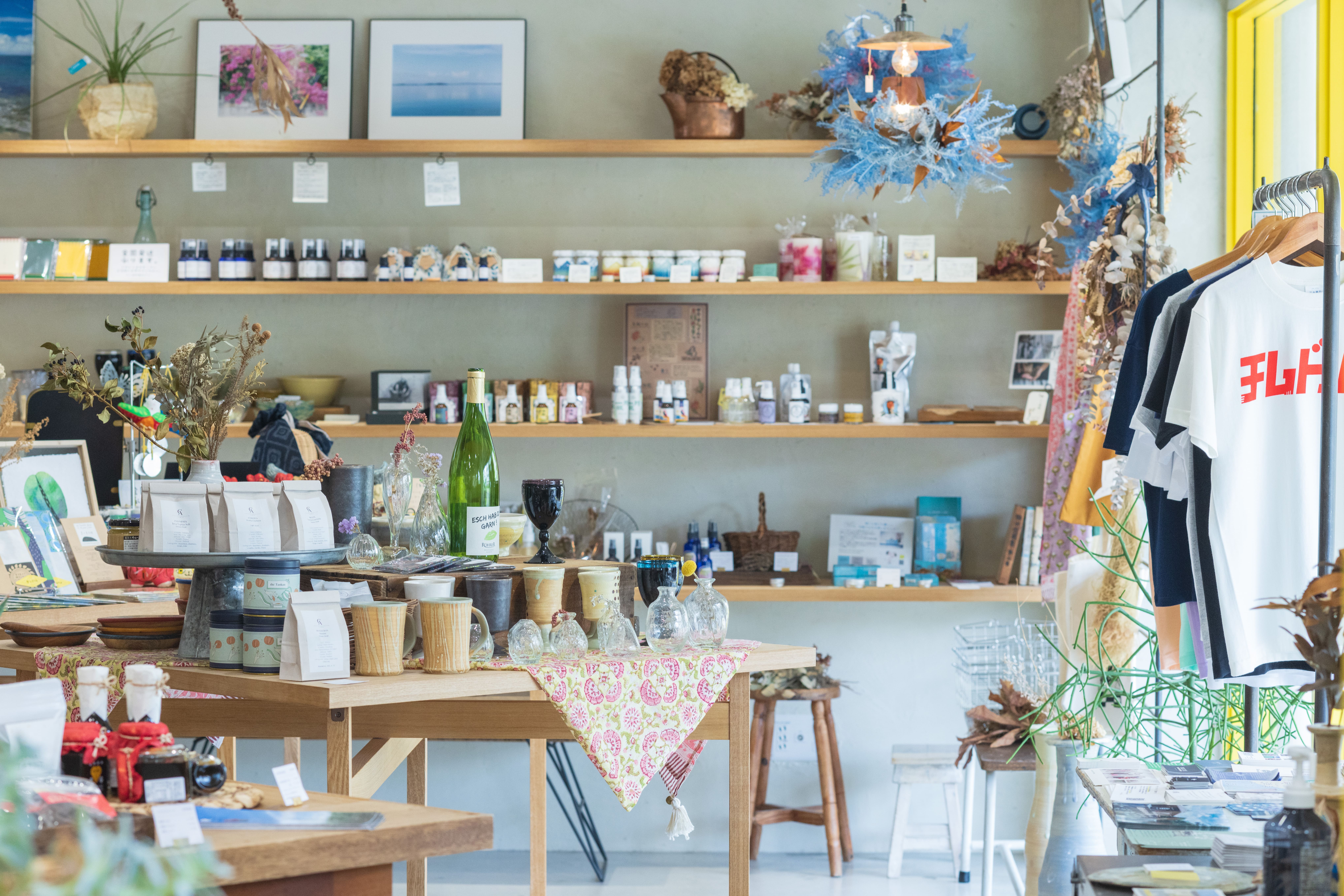 沖縄の“ものづくり”で暮らしを豊かに装う日々の店。やちむん(陶器)やガラス、紅型などの沖縄クラフトから、コスメや紙もの雑貨、食品まで、沖縄でうまれた多種多様な“ものづくり”が並ぶお店です。お土産にギフト、日々のお買い物まで楽しめます。併設のパーラーではシュークリームやドリンクなども提供しています!