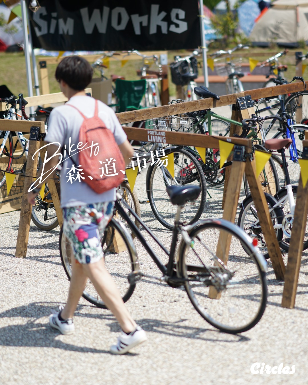 来場者の自転車をしっかり預かる駐輪サービス サイクルクローク。自転車と一緒に会場に出入りできる 自転車専用入口 と 自転車専用入場チケット。自転車での来場者向けの 自転車専用キャンプエリア。会場まで一緒に走る BIKE to 森、道、市場 ライドツアーなど、サークルズでは自転車で来場するために必要なサポートを全て実施します。