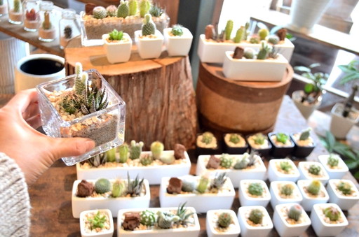 持ち帰りしやすいサイズの盆栽・サボテンの寄せ植え ハンギンググリーンなどを持っていく予定です。