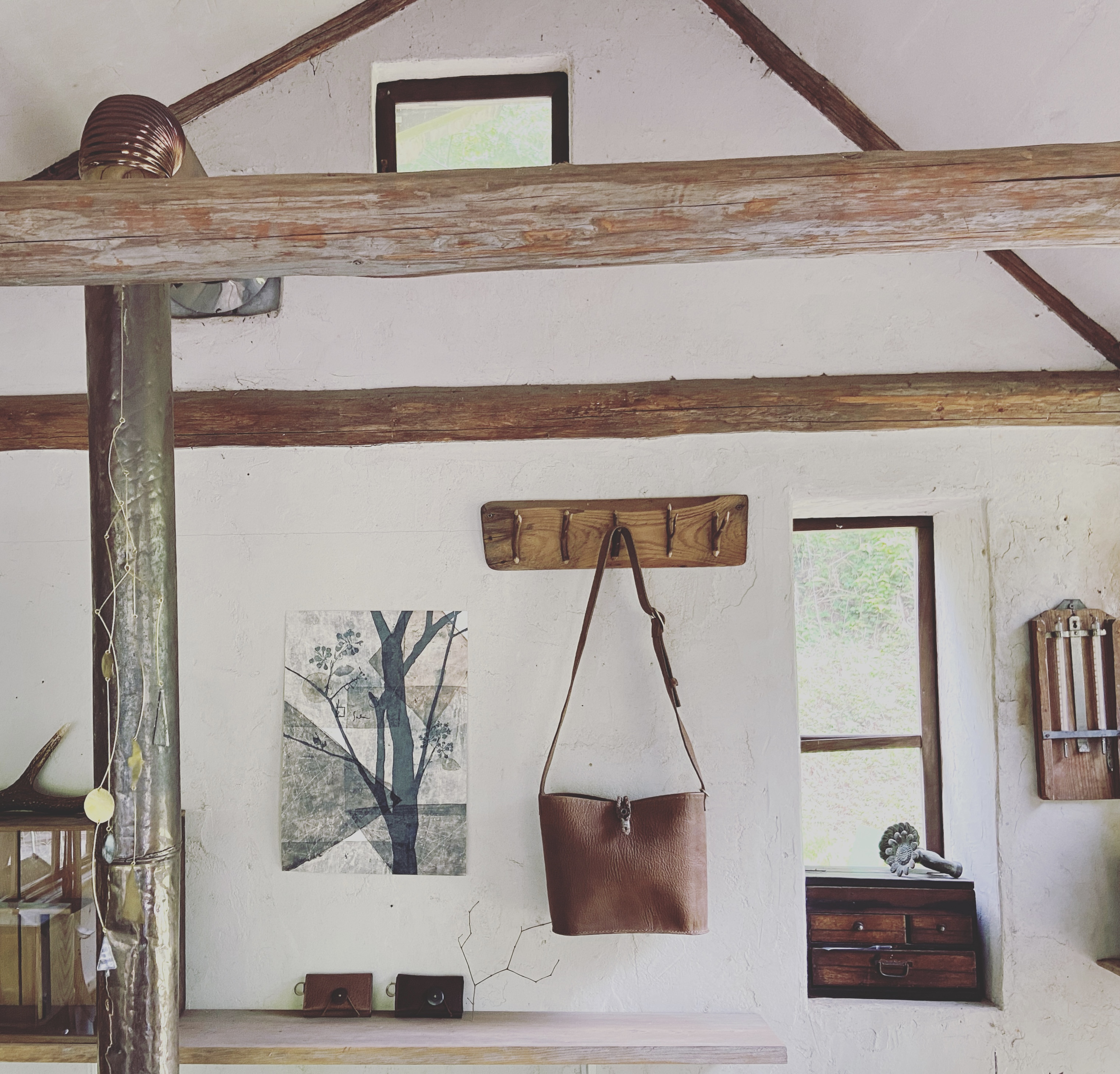 東京都八王子市の西に位置する陣馬山の麓にアトリエを構え、小さな小屋で 革ものとアクセサリーと古いものと合わせた暮らしのものものを作っています。