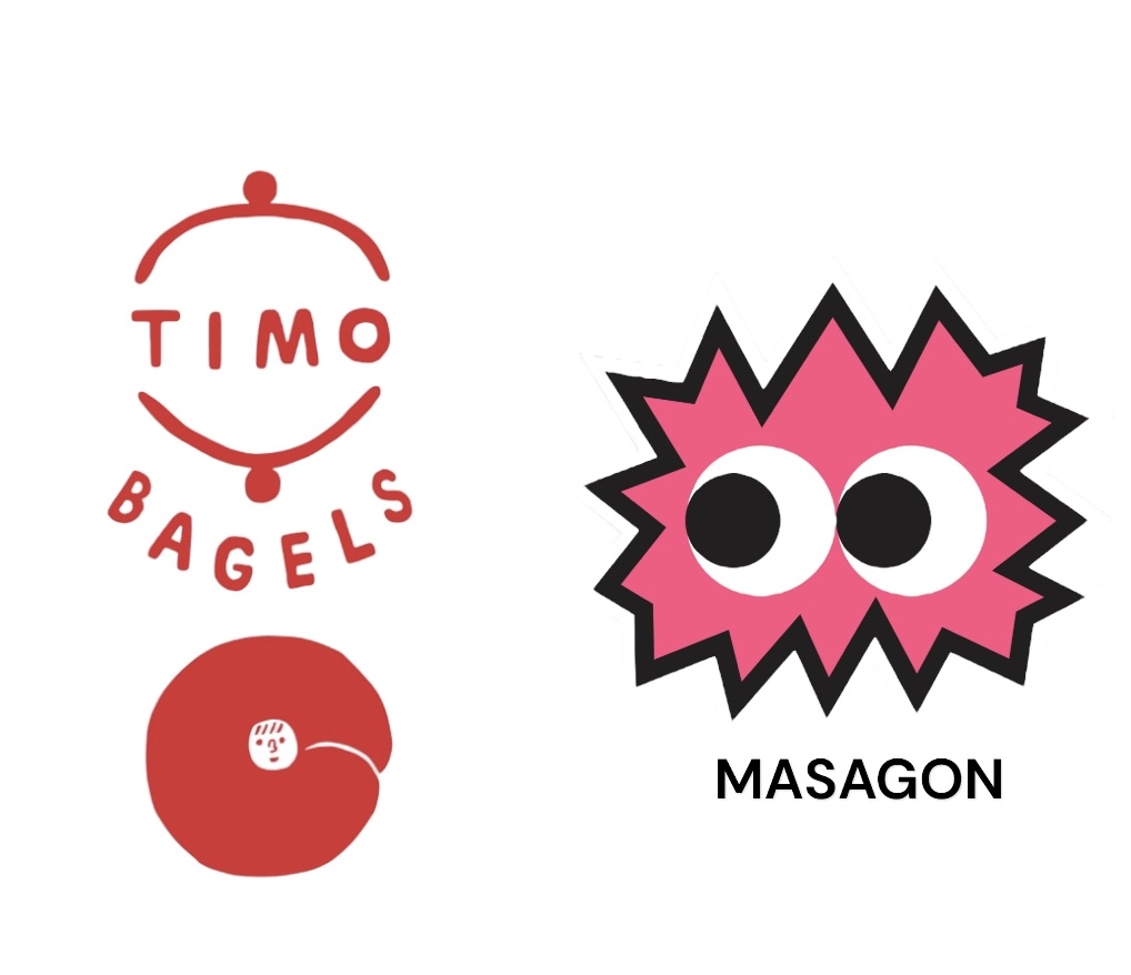 MASAGONは、ミニピカピカキャンバスや刺繍のバッジオリジナルのTシャツや帽子、靴下などのアパレル商品やステッカー、バッジなど販売。 TIMOBAGELSは、ベーグルサンドやドーナツ、焼き菓子、自家製ドリンク、オリジナルグッズなど販売します。