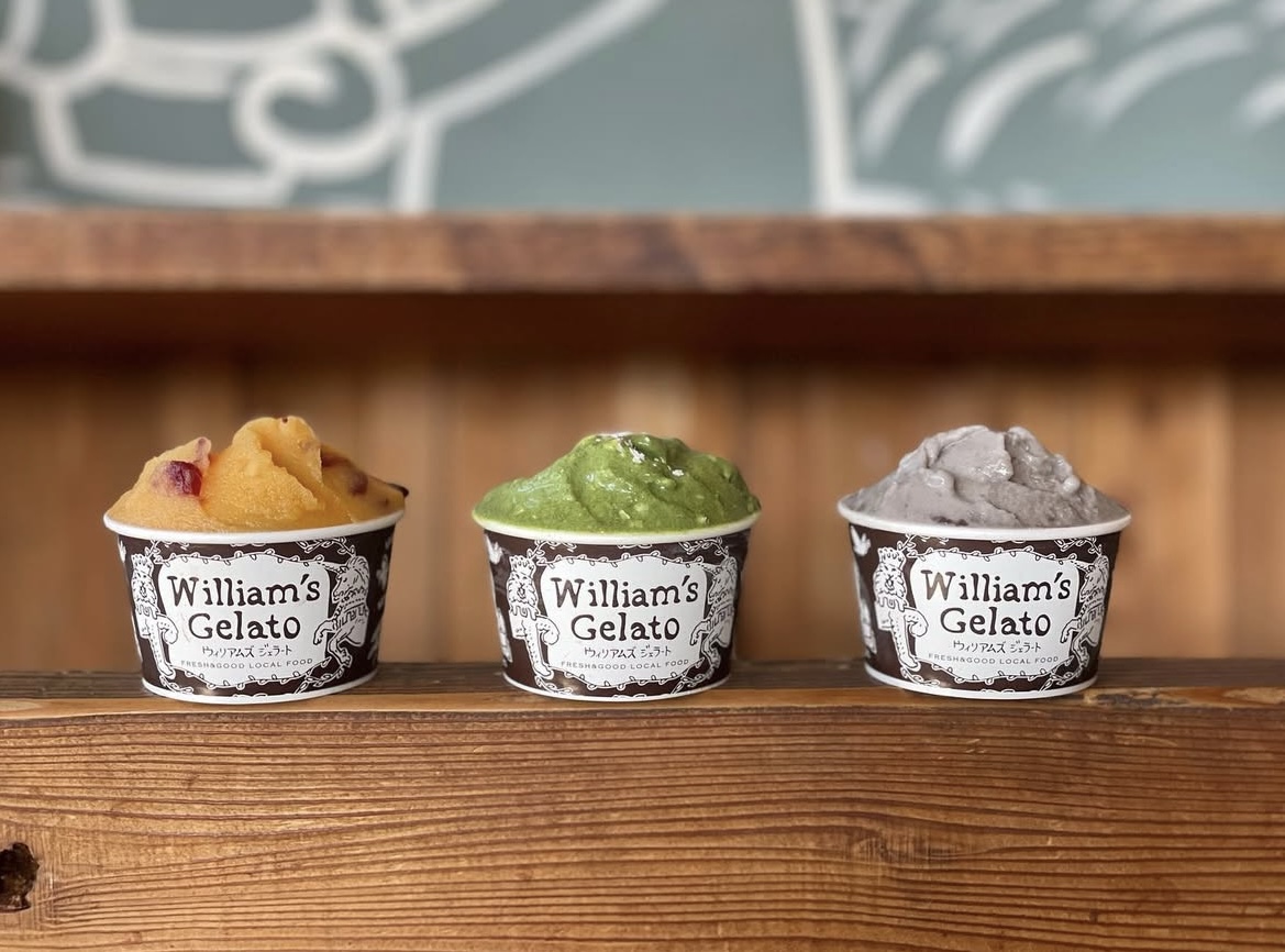 【三河特産ジェラート】 🆕①森道イチゴ:森の中で赤いベリーを見つけ、頬張った瞬間に広がる味をイメージしたフレーバー。今年初登場です! ②蒲郡みかんクランベリー:甘酸っぱいクランベリーと甘いみかんの組み合わせが生み出す、深みと爽やかさを楽しめる一品です。 ③黒麹甘酒ミルク:西尾市〈みやもと糀店〉の黒麹を使用し、シトラス系の酸味とコクが絶妙に調和した味わいです。 ④かぶせ茶ホワイトチョコ:吉良町産のかぶせ茶の豊かな香りと、ほんのり感じるお茶の苦味が濃厚な甘みと絶妙にマッチ。刻んだホワイトチョコの食感も楽しめます。 ⭐︎ウィリアムズジェラートおすすめの定番フレーバー『タヒチアンバニラ』と『チョコレートソルベ』もご用意します!