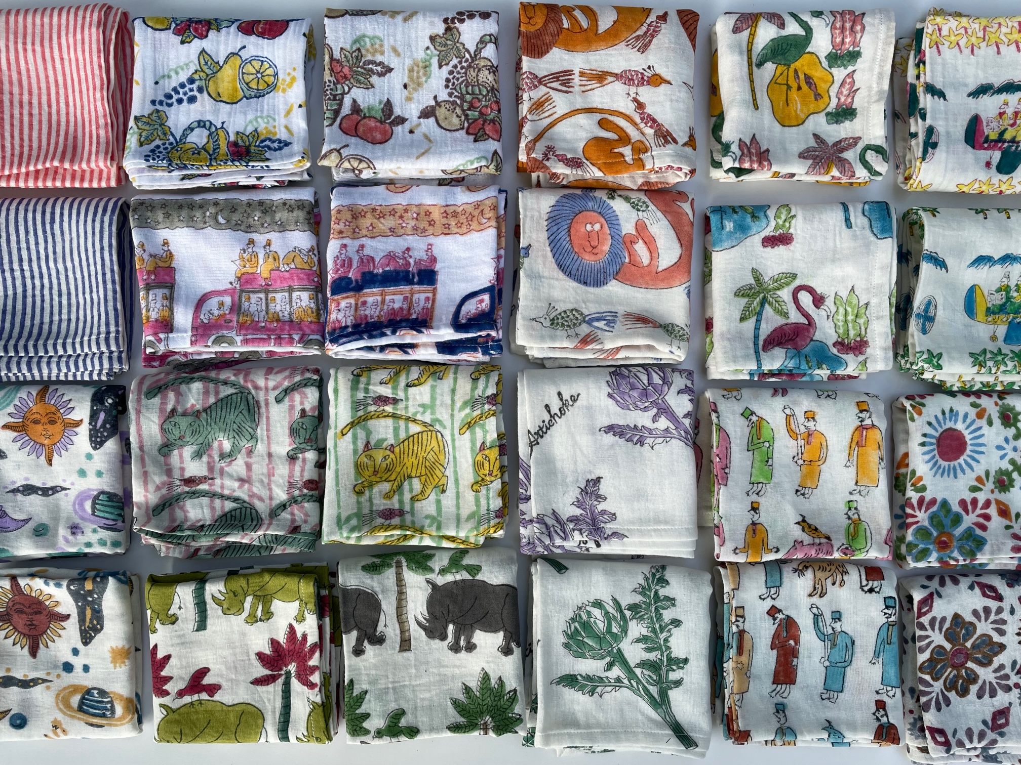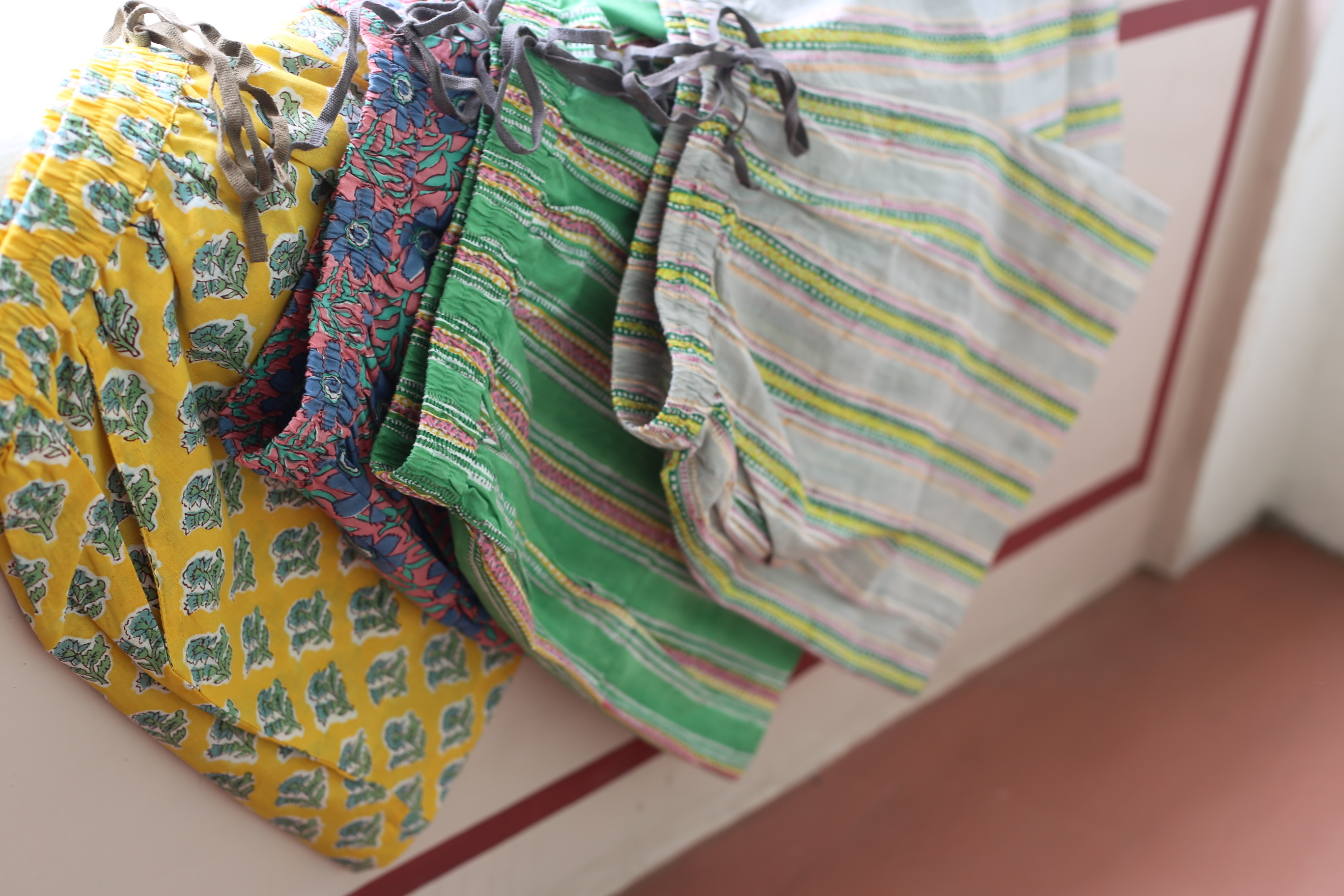 定番のブロックプリントのダブルガーゼクロスは、子どもから大人まで毎日の暮らしに心地よく寄り添う布で、日々の暮らしはもちろん、キャンプやアウトドアにもおすすめです。森道市場ではこれからの季節にぴったりの気持ちの良いブロックプリントのルームウェアも並びます。