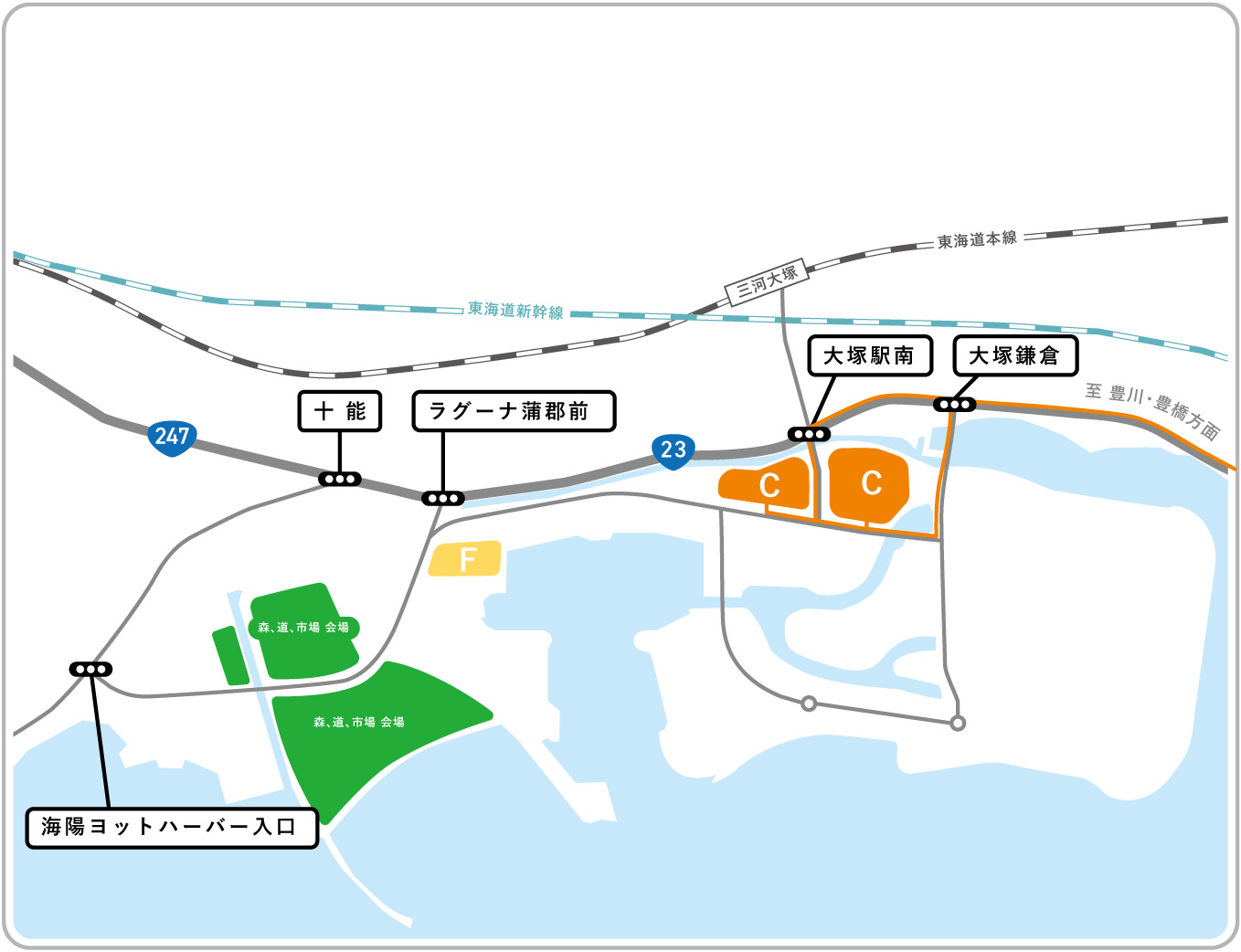 ※三河大塚駅からのシャトルバスはありません。