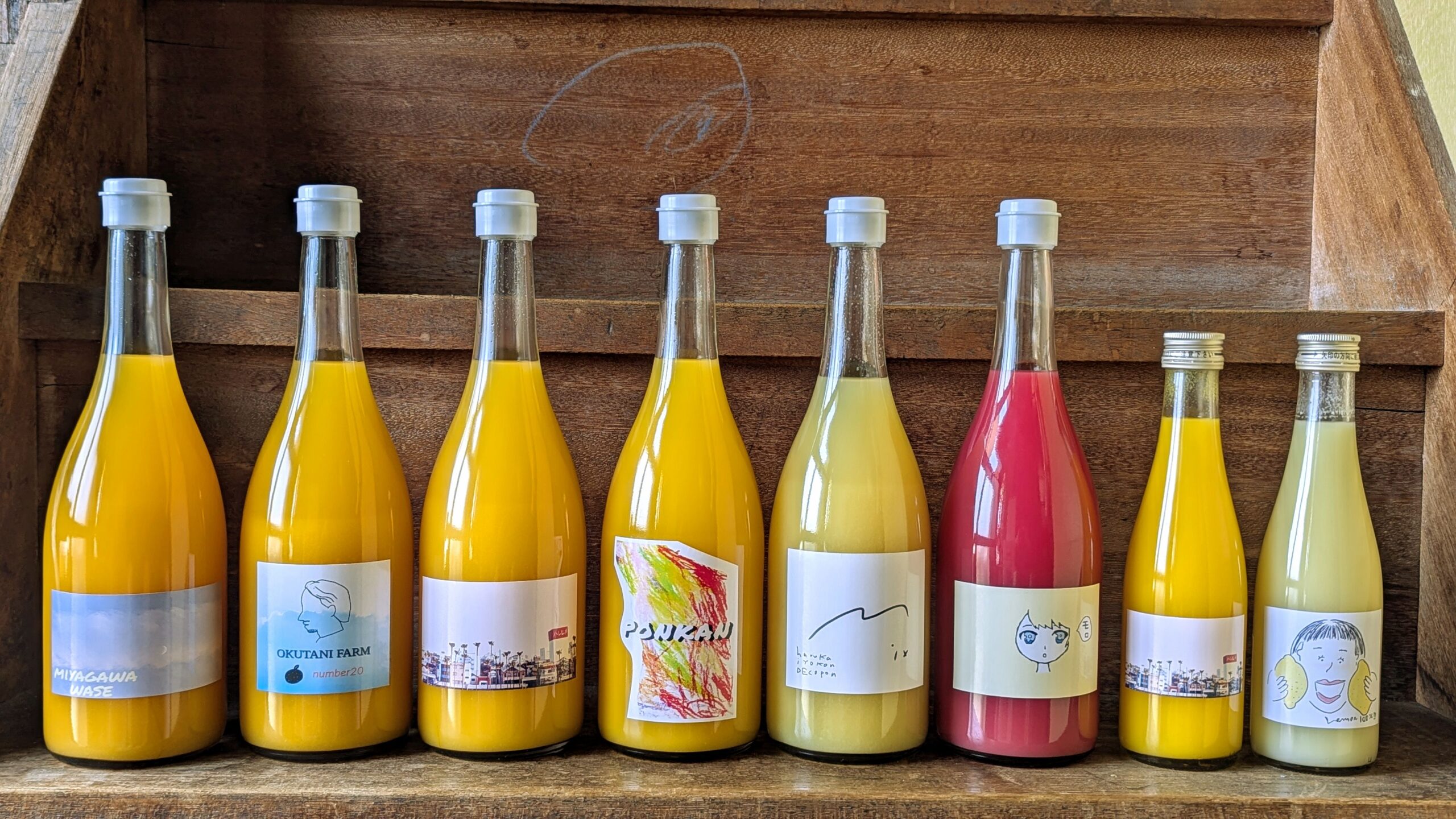 愛媛県宇和島市吉田町の海沿いの奥南地区で柑橘を栽培しています。 柑橘産地のなかでも品種の多い地域です。 色々な柑橘を味わってほしく、ストレートジュースを数種類用意します。