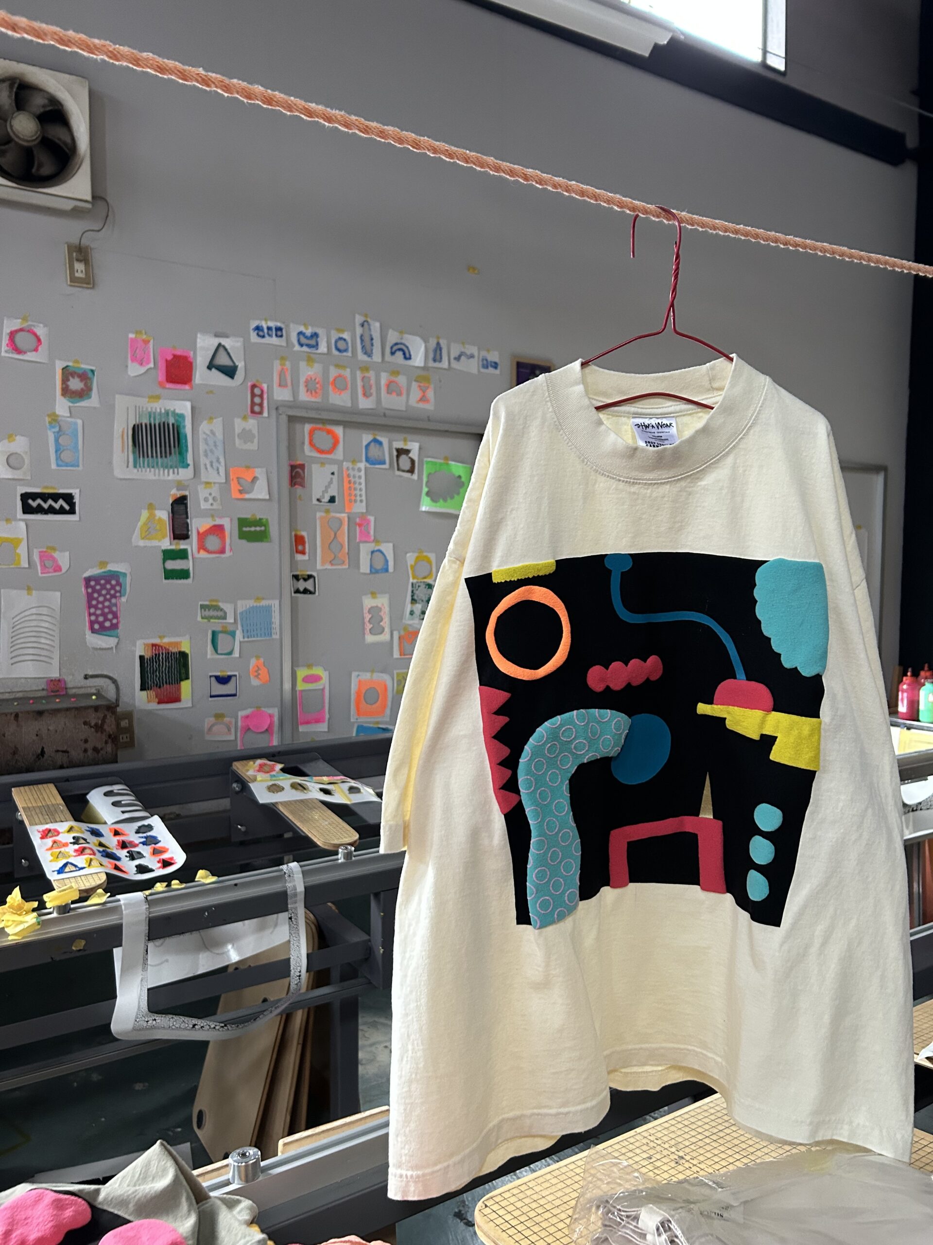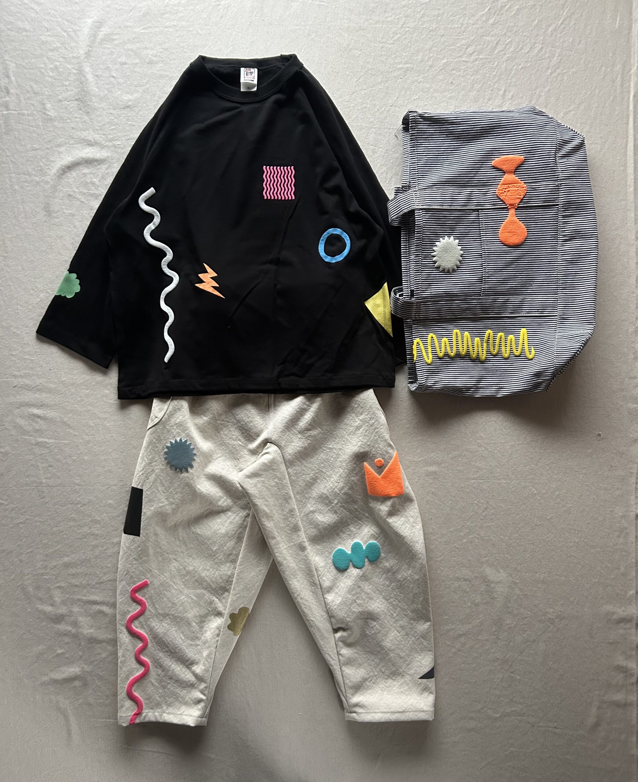 シルクスクリーン加工による、Tシャツ、ロンT、モンペパンツ、ハーフパンツなどなど(ほとんどの作品が1点物)