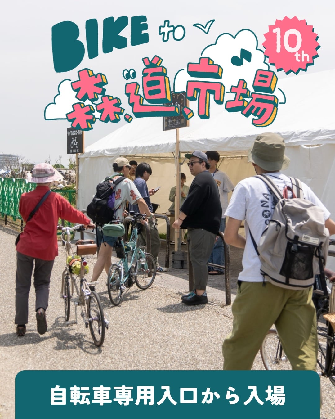 自転車で来る人が多いイベントって良いイベントなんですよ!環境に良いのはもちろん、地元の人が多かったり、アクセスそのものを楽しめる人が多いって事なんです!なんてやり取りから始まった「BIKE to 森、道、市場」が今年で10年目!
