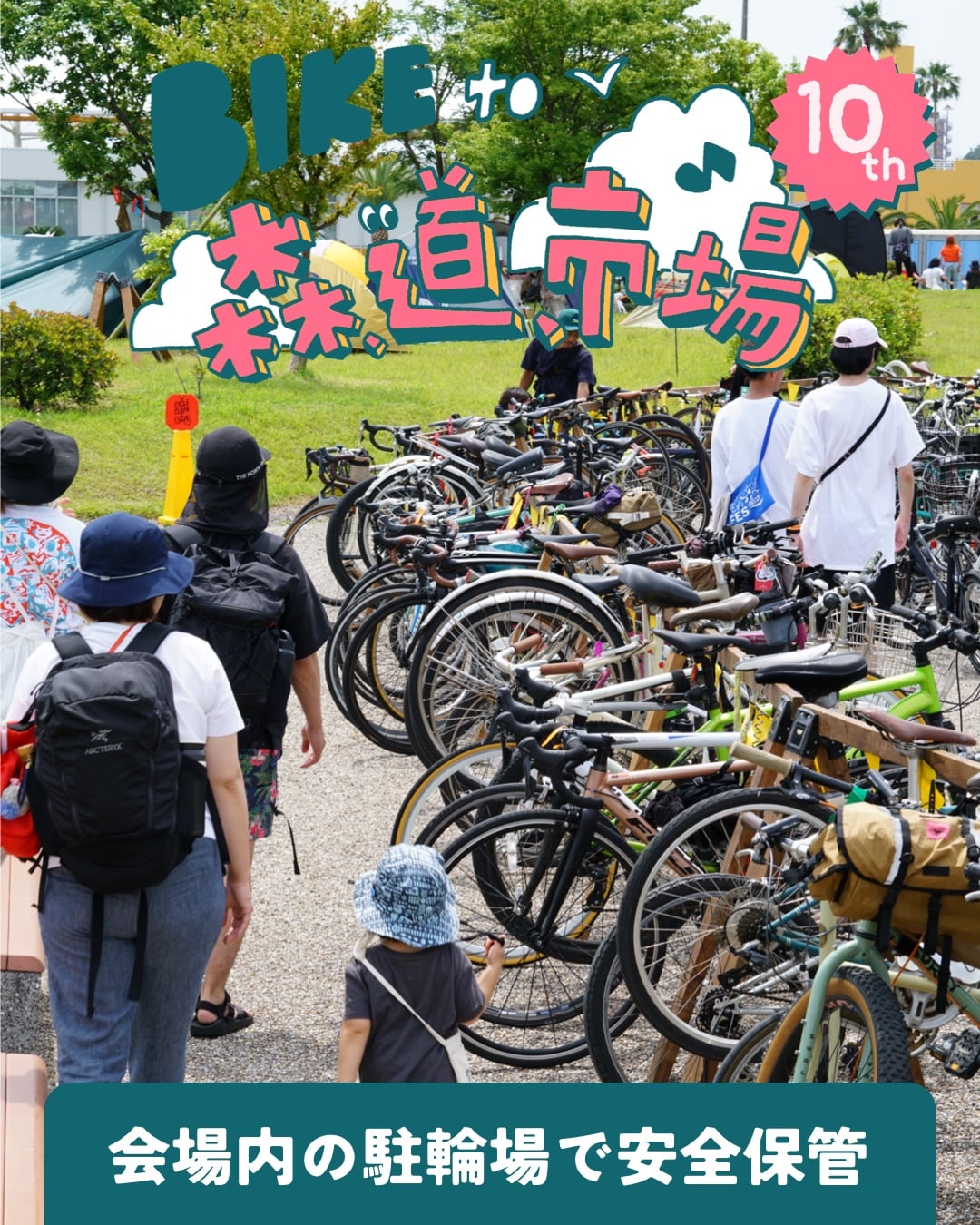 混雑する電車やバスを避けて「自転車」で会場にアプローチする人もこの10年でだいぶ増えてました。今年も体を動かして、森、道、市場の良い音楽と美味しいフードをめいっぱい楽しもう!